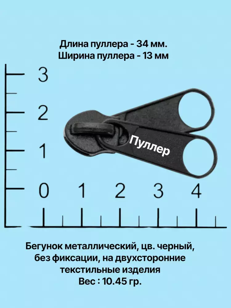 Бегунок с двойным пуллером усиленный к рул молнии тип 8 (10.45гр.) черный 5 шт.*