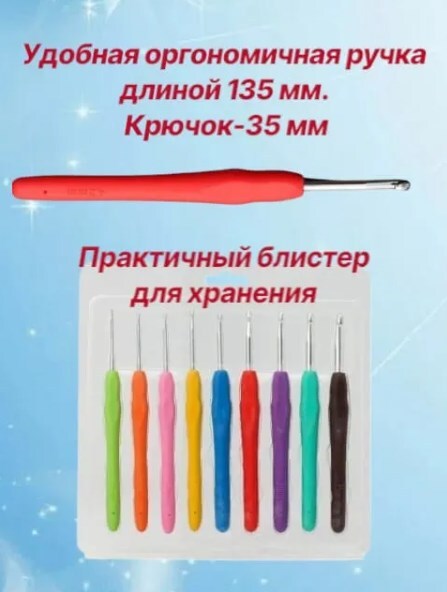 Набор вязальных крючков с каучуковой ручкой Ассорти №0,5-2,7 уп.10 шт.