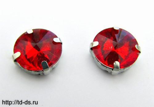 | Стразы* пришивные в металлической оправе круглые (уп. 50шт) диам.14 мм красный